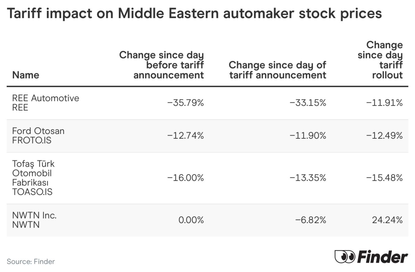 Middle Eastern automakers have seen many ups and downs (mostly downs) since the tariff announcement.