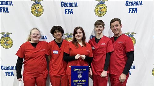 CCSD congratulates the Clarke Central High School FFA chapter’s “senior” veterinary science team for winning the state championship on Saturday, Feb. 10, at the state-level FFA vet science career development event and competition in Perry.