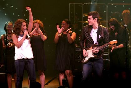 MGM Grand At Foxwoods - Opening Concert LEDYARD, CT - MAY 17: (L-R) Alicia Keys and John Mayer perform during the Grand Opening Weekend Celebration at MGM Grand at Foxwoods Resort & Casino on May 17, 2008 in Ledyard, CT. (Photo by Astrid Stawiarz/Getty Images) (Astrid Stawiarz/Getty Images)