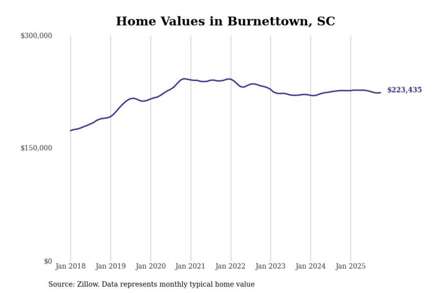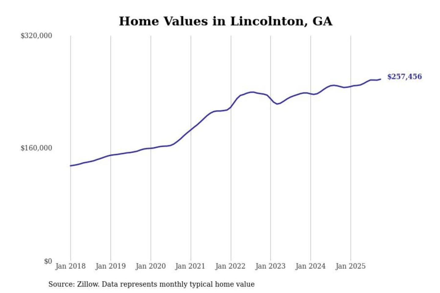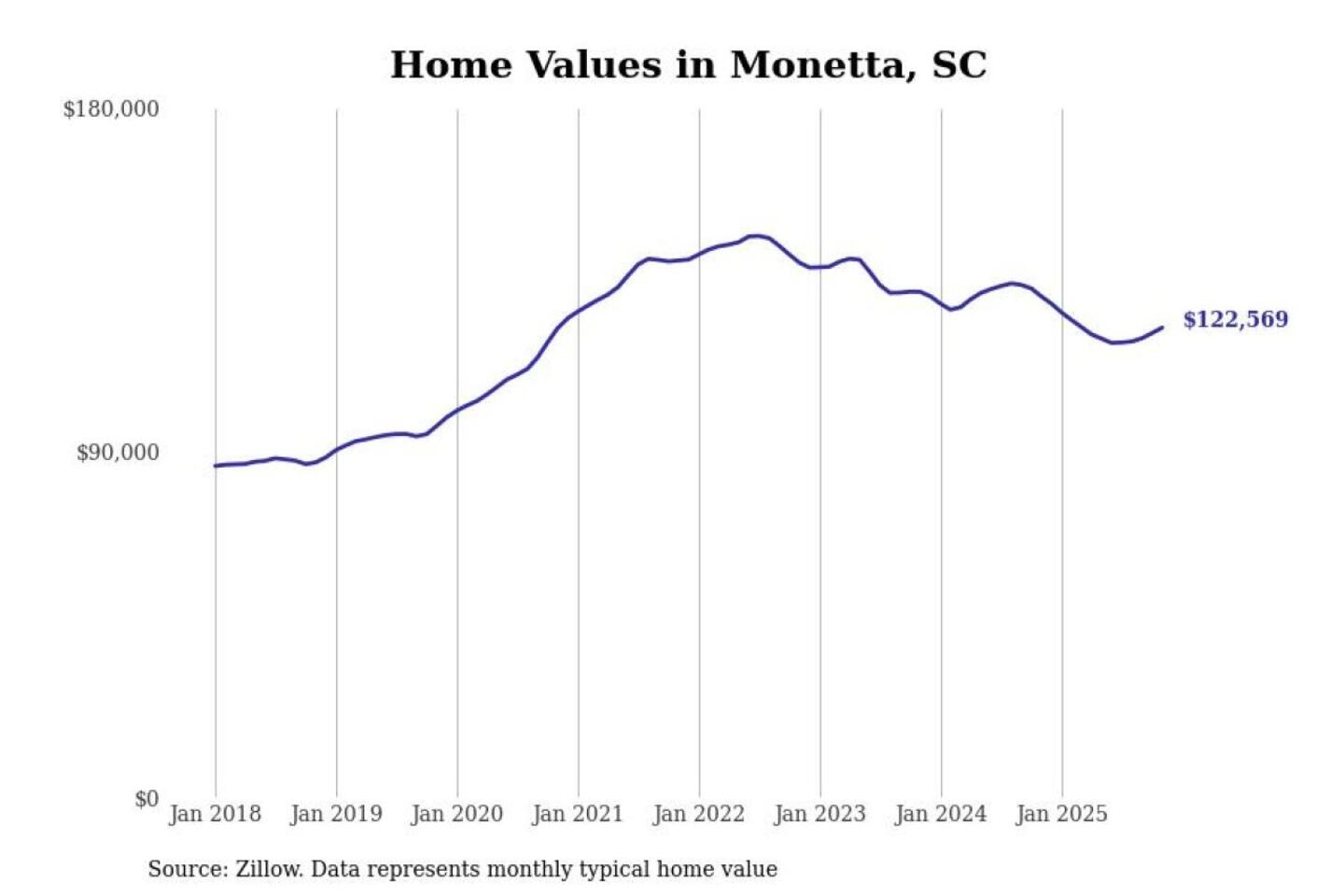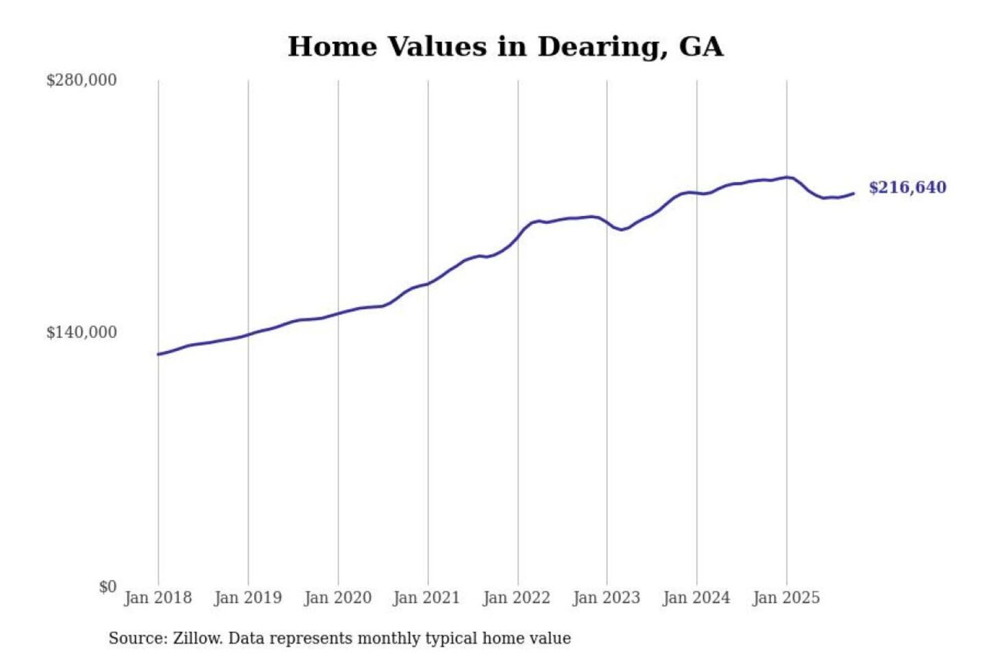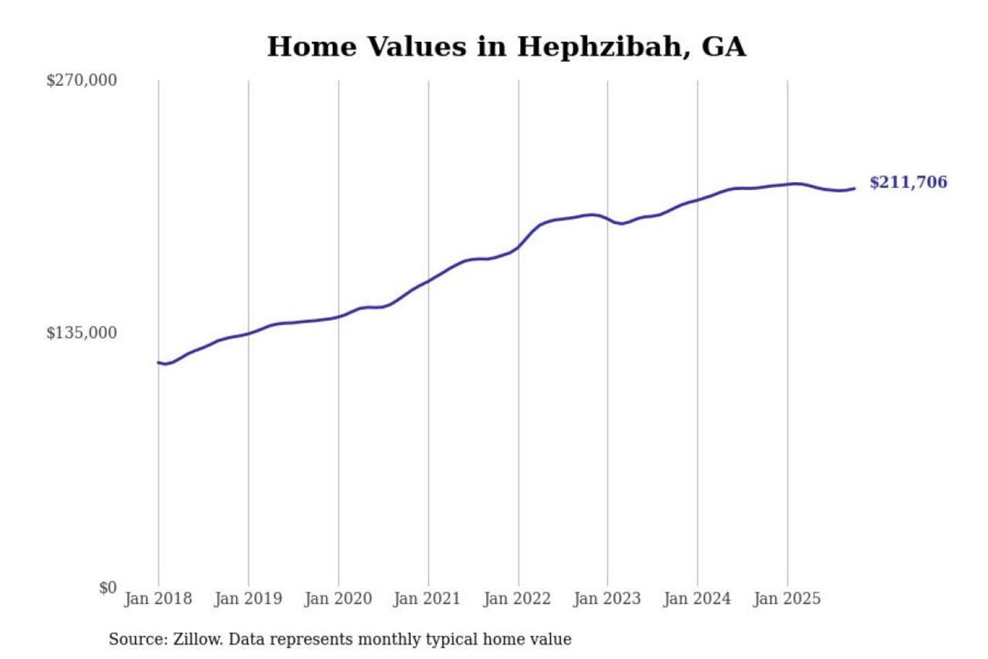 Stacker compiled a list of cities with the most expensive homes in the Augusta-Richmond County, GA-SC metro area using data from Zillow. Charts show the monthly typical home value since January 2018.