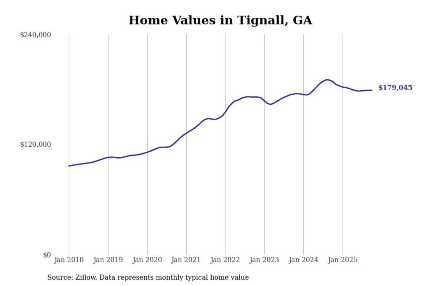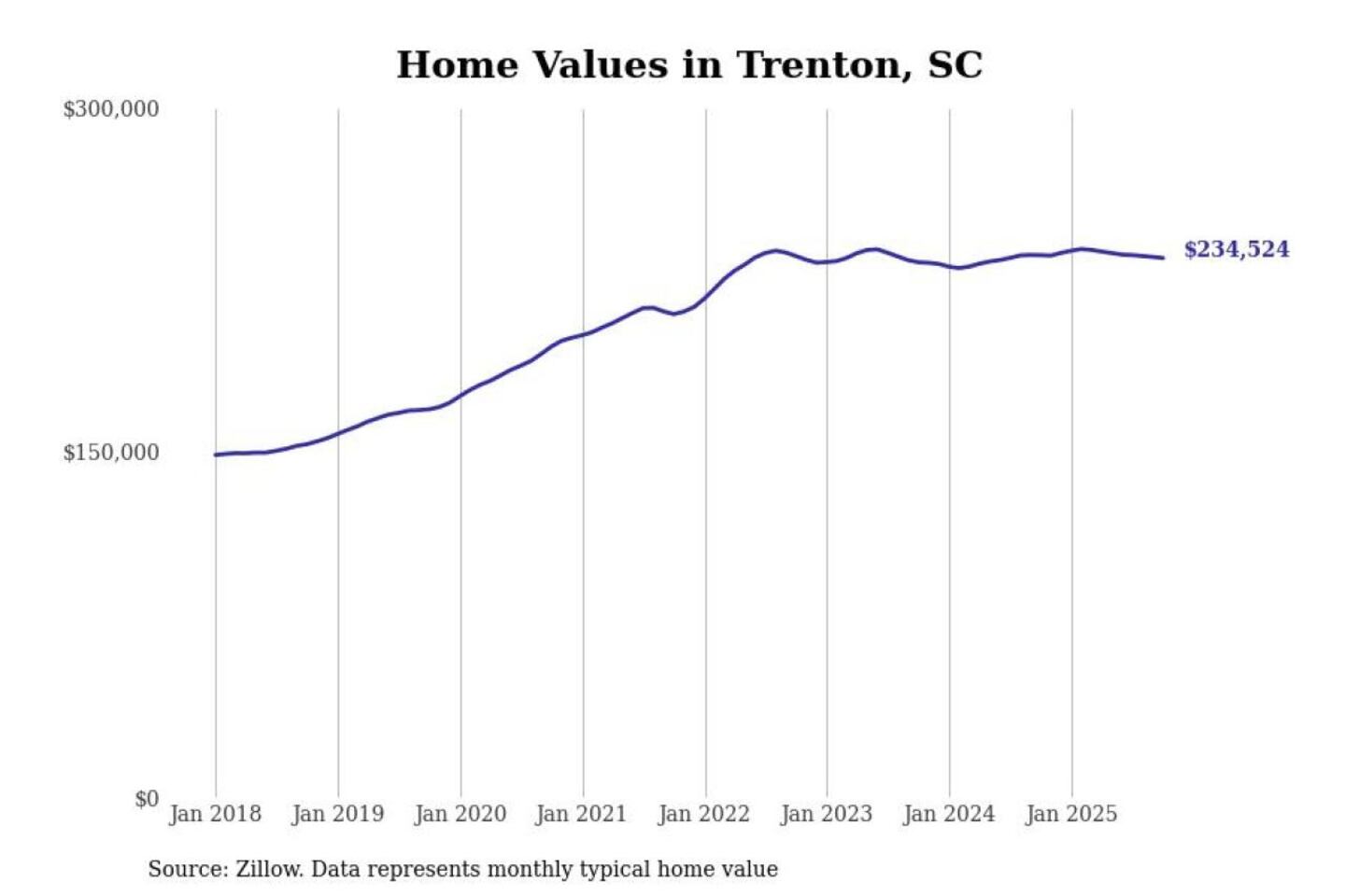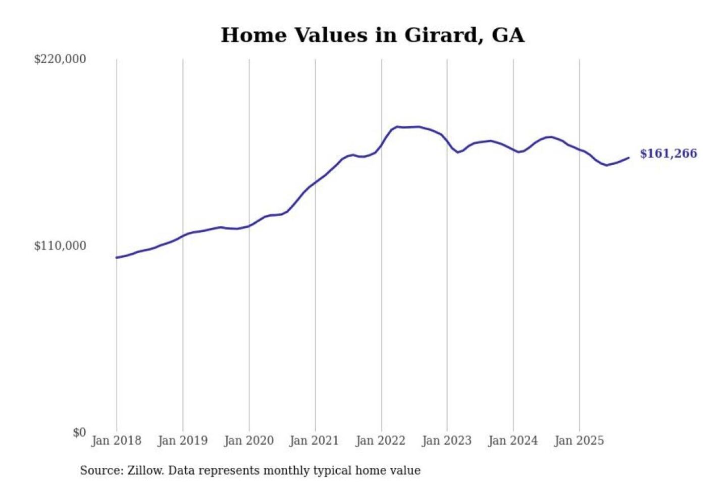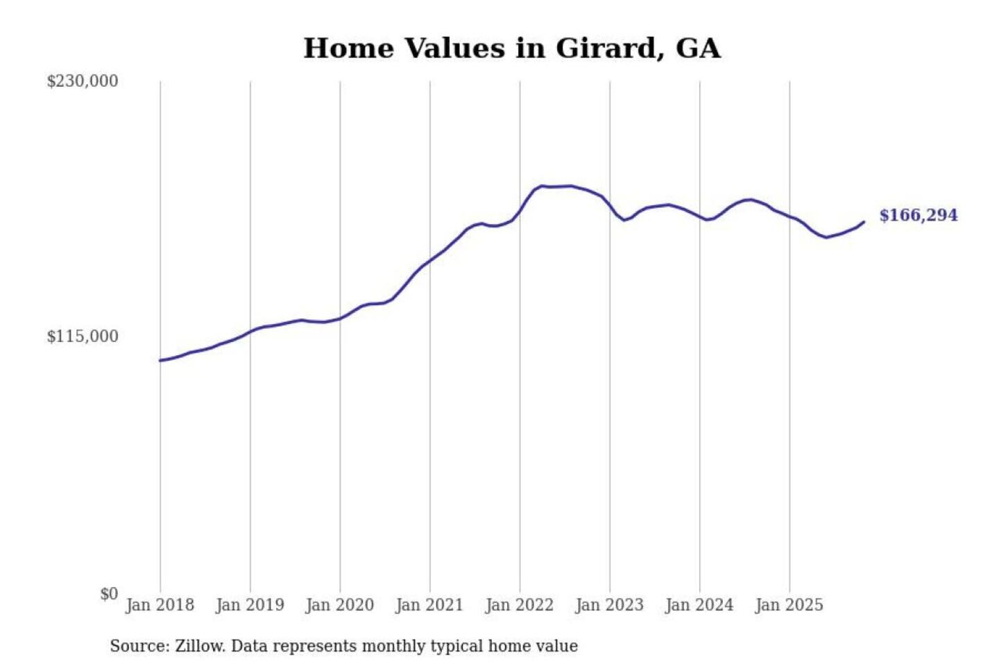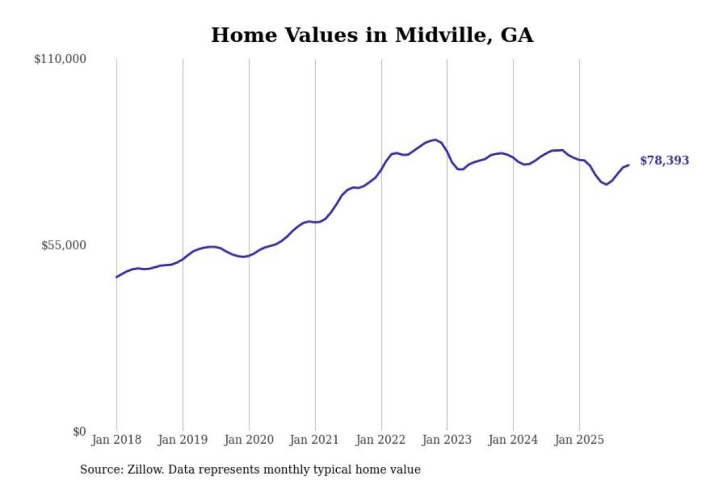 Stacker compiled a list of cities with the most expensive homes in the Augusta-Richmond County, GA-SC metro area using data from Zillow. Charts show the monthly typical home value since January 2018.