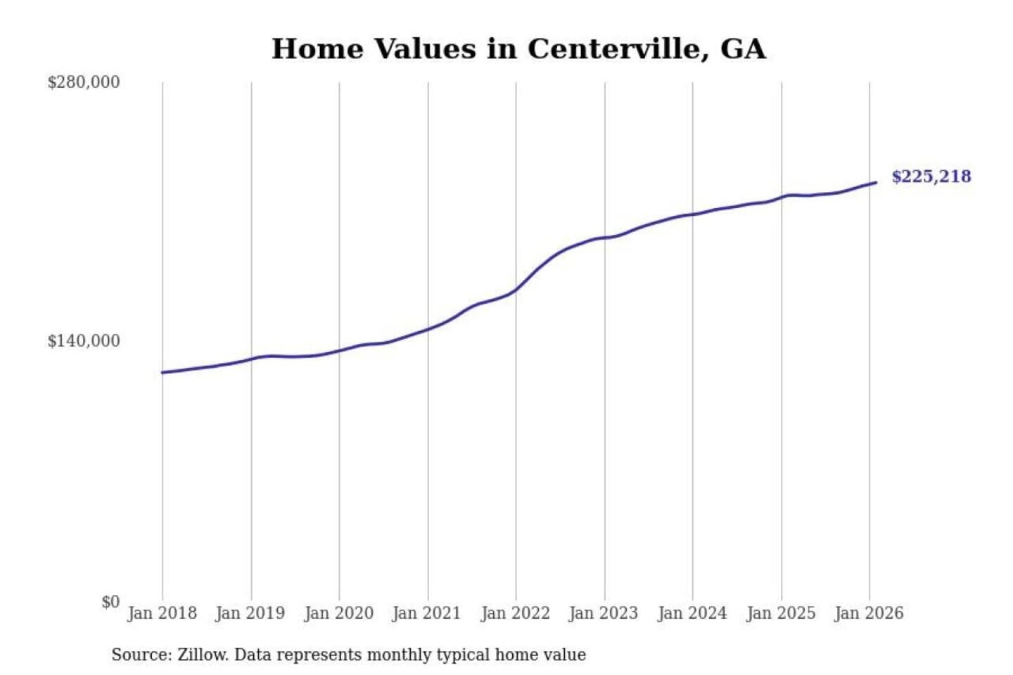 Stacker compiled a list of cities with the most expensive homes in the Warner Robins, GA metro area using data from Zillow. Charts show the monthly typical home value since January 2018.