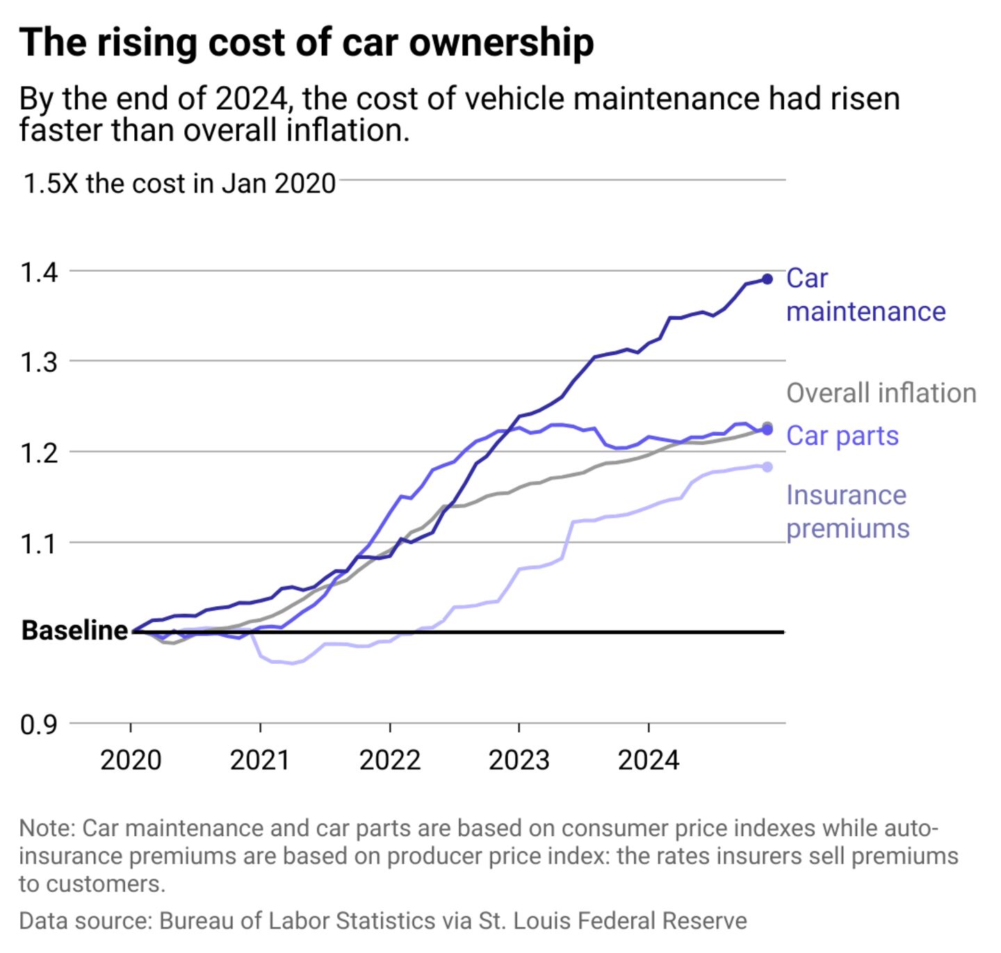BLS data shows that although maintenance and repair costs have climbed steadily since the 1960s, they've skyrocketed over the last few years. This is the "main reason" for higher insurance rates, The New York Times reported.