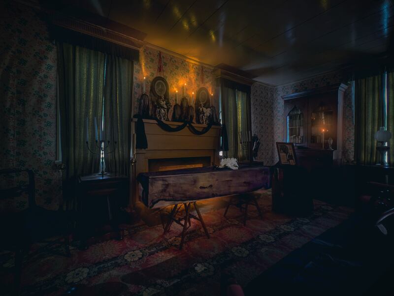 Throughout the month of October, the interior of the historic William Root House in Marietta will be decorated for a Victorian-era funeral. Curtains will be drawn, and rooms will have black crepe and ribbons. Visitors will be able to see embalming equipment, mourning jewelry made from human hair, and other related artifacts from the 19th century.