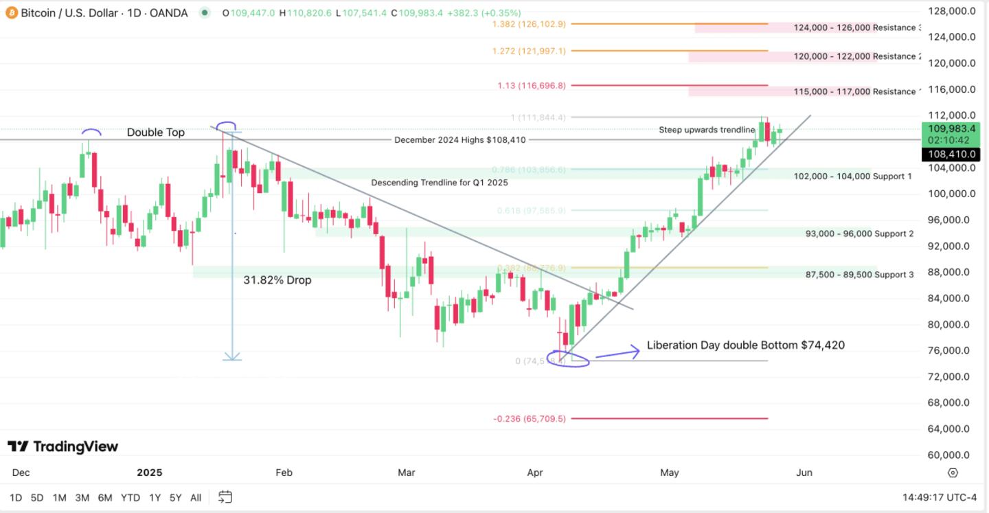 The No. 1 cryptocurrency has been in a relentless rally since the April lows, enjoying steady inflows from ETFs and institutions.