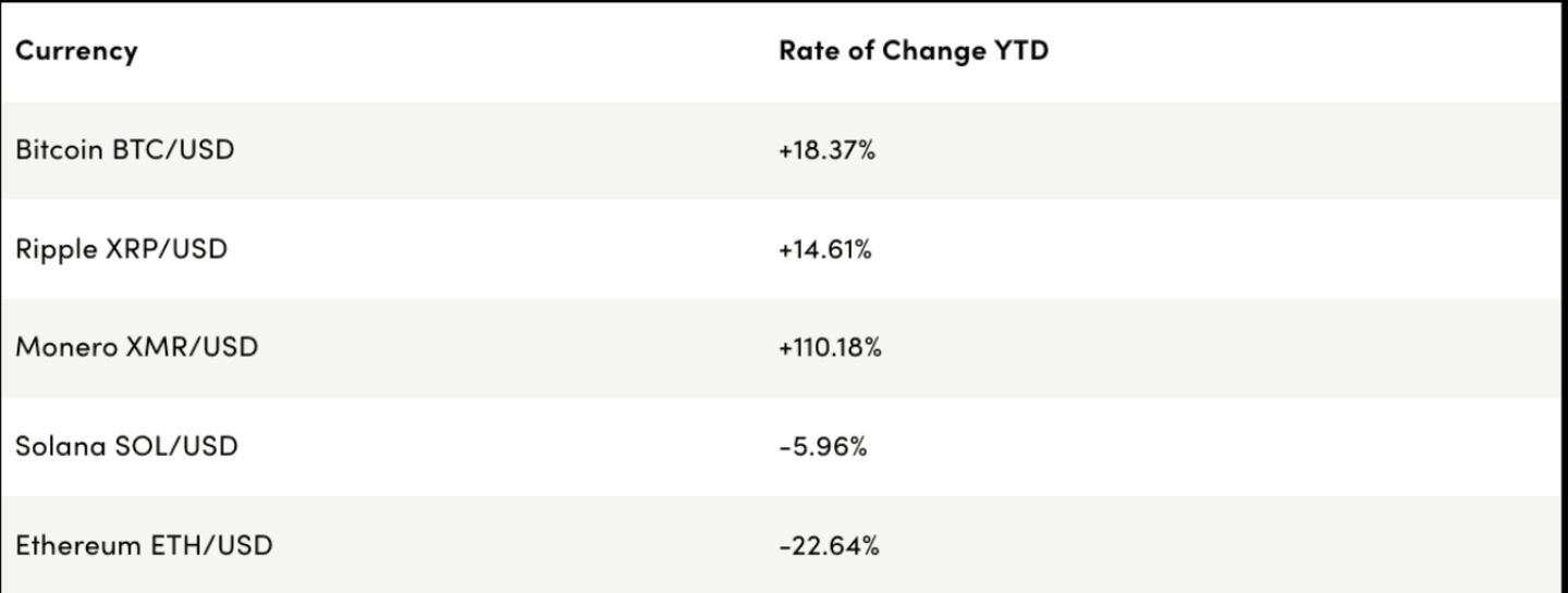Monero is the surprise of the year in terms of cryptocurrency performance. The cryptocurrency had a previous all-time high from the 2021 bull cycle at $520, though it had stayed at an average of less than $150 from June 2022 to November 2024 and is now trading closer to a $350 to $400 range.