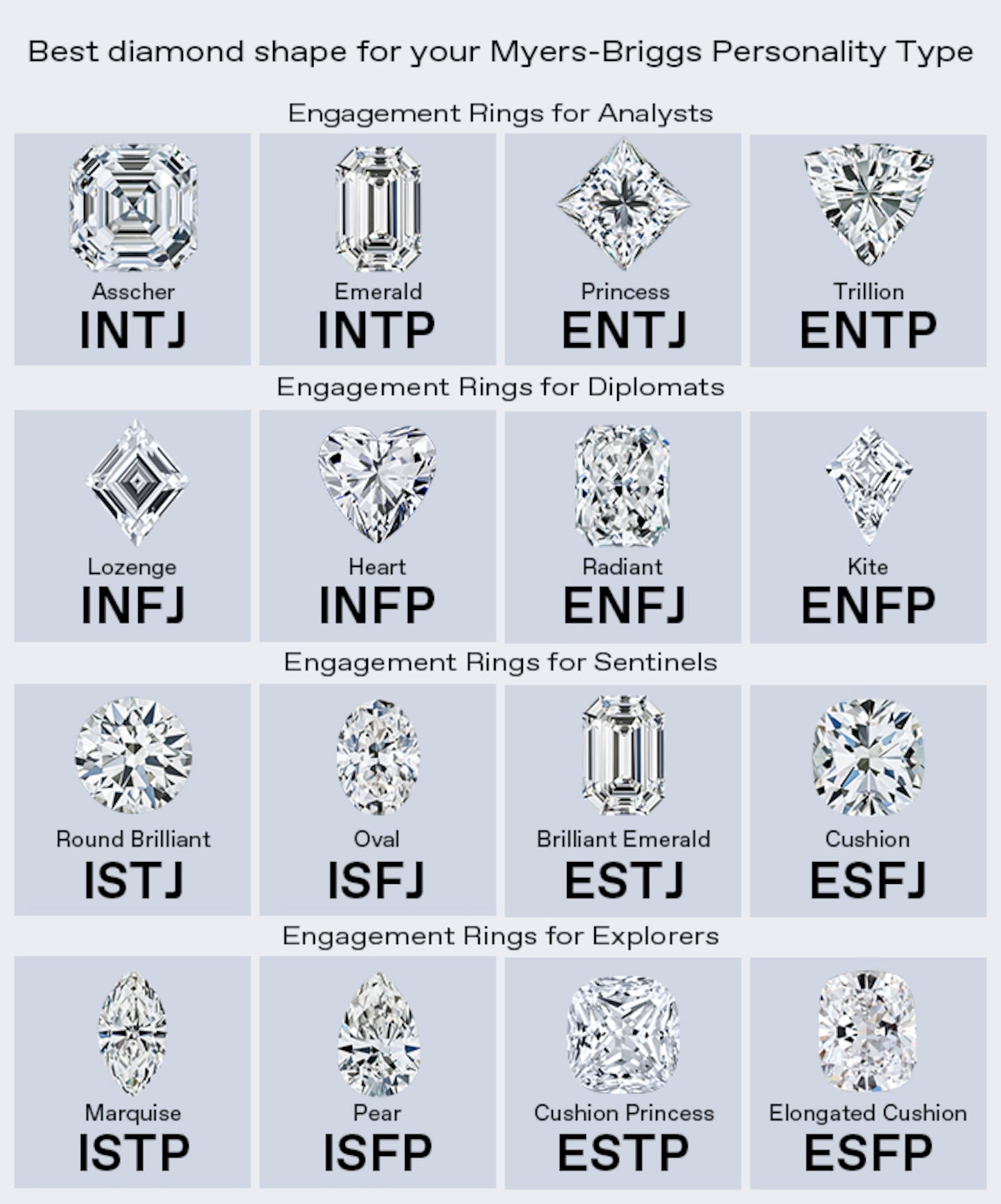 Your engagement ring is more than just a beautiful piece of jewelry—it's a reflection of your personality, values, and love story. The Myers-Briggs Type Indicator, or MBTI, provides insights into how individuals perceive the world and make decisions. Pairing your MBTI type with an engagement ring ensures your ring resonates with your true essence and unique style. VRAI, a fine jewelry brand that features lab-grown diamonds, takes a deeper look at the styles that each Myers-Brigg personality type should say yes to.