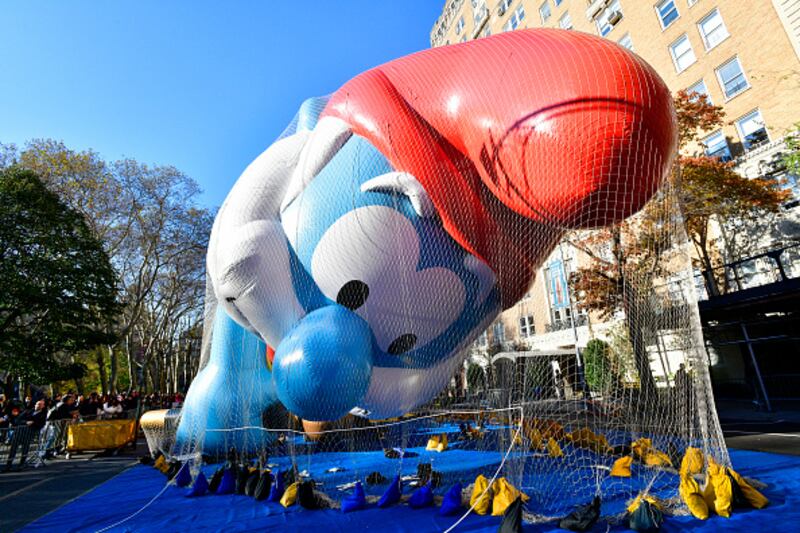 Photos: Macy's Thanksgiving Day Parade 2022 The Smurfs balloon by Nickelodeon is seen during 96th Macy's Thanksgiving Day Parade - Balloon Inflation on November 23, 2022, in New York City. (Eugene Gologursky/Getty Images for Macy's, Inc.)