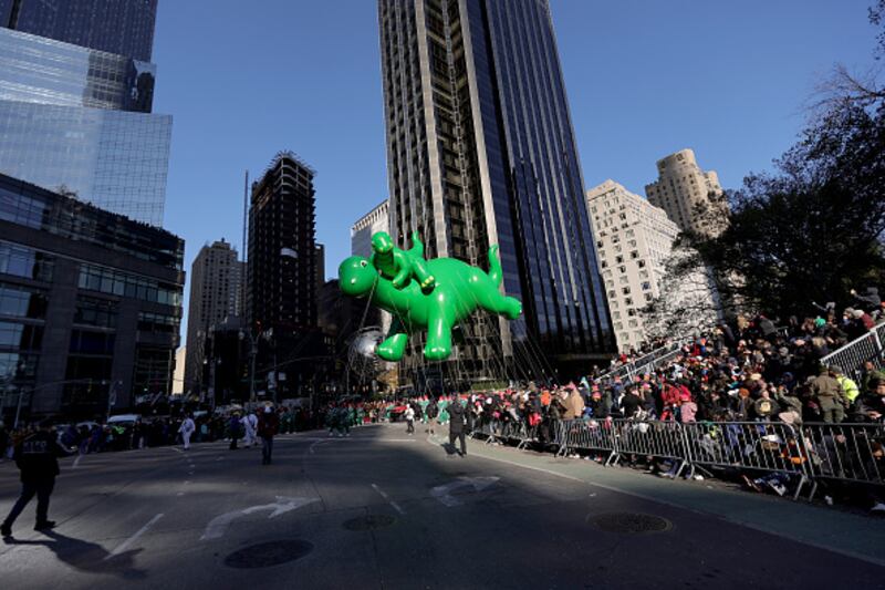 Photos: Macy's Thanksgiving Day Parade 2022 A view of the Dino and Baby Dino balloon during the 2022 Macy's Thanksgiving Day Parade on November 24, 2022, in New York City. (Michael Loccisano/Getty Images)