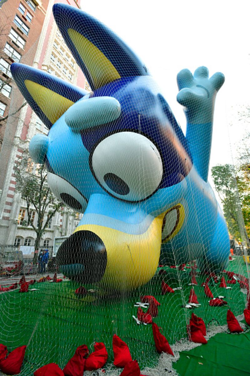 Photos: Macy's Thanksgiving Day Parade 2022 Bluey by BBC is seen during 96th Macy's Thanksgiving Day Parade - Balloon Inflation on November 23, 2022, in New York City. (Eugene Gologursky/Getty Images for Macy's, Inc.)
