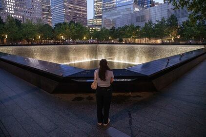 9/11 - Ground Zero NEW YORK, NEW YORK - SEPTEMBER 11: A person looks at the south reflecting pool before the annual 9/11 Commemoration Ceremony at the National 9/11 Memorial and Museum on September 11, 2025 in New York City. Government officials joined family, friends, and first responders as they gathered at Ground Zero honoring the lives of their loved ones on the 24th anniversary of the terror attacks of September 11, 2001, at the World Trade Center. (Photo by Adam Gray/Getty Images) (Adam Gray/Getty Images)