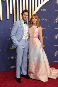 77th Primetime Emmy Awards - Red Carpet LOS ANGELES, CALIFORNIA - SEPTEMBER 14: (L-R) Kayla Radomski and Jason Segel attend the 77th Primetime Emmy Awards at Peacock Theater on September 14, 2025 in Los Angeles, California. (Photo by Amy Sussman/Getty Images) (Amy Sussman/Getty Images)